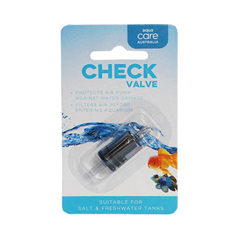 Prevent water from siphoning out of your aquarium and damaging your air pump by fitting your airline with a genuine Aquacare check valve!- Protects air pup against water damage- Filters air before entering aquarium- Suitable for salt & Freshwater tanks
