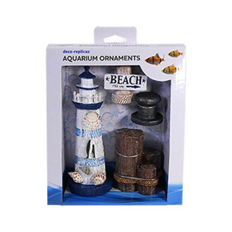 Transform your aquarium into a charming seaside escape with the Nautical Ornament Kit from Penn-Plax. This kit includes meticulously crafted decorations, such as a lighthouse, piling, beach sign, and bollard, that bring the spirit of the ocean to life in your tank. With vibrant and detailed designs, these ornaments add a touch of nautical adventure and create an immersive underwater scene. Setting up your aquarium with this kit is a breeze. The variety of decorations allows for creative placement, enhancing the visual appeal of your aquatic environment while also providing a fun and thematic touch. Perfect for pet parents looking to add a touch of the sea to their tank, this kit is suitable for both new setups and existing tanks.