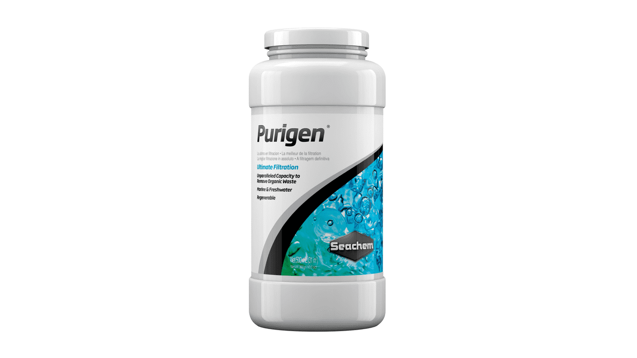 Purigen® is a premium synthetic adsorbent that is unlike any other filtration product. It is not a mixture of ion exchangers or adsorbents, but a unique macro-porous synthetic polymer that removes soluble and insoluble impurities from water at a rate and capacity that exceeds all other competing products by over 500%. Purigen® controls ammonia, nitrites and nitrates by removing nitrogenous organic waste that would otherwise release these harmful compounds. Purigen’s impact on trace elements is minimal. It significantly raises redox. It polishes water to unparalleled clarity. Purigen® darkens progressively as it exhausts, and is easily renewed by treating with bleach. Purigen® is designed for both marine and freshwater use.
