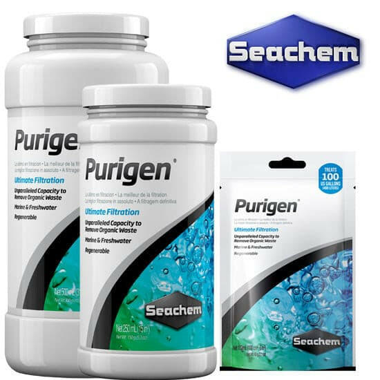 Purigen® can also be regenerated. As it adsorbs waste products, Purigen® will change color from a pale blonde to a dark brown, almost black. Once it is exhausted, it can be regenerated with a solution of bleach and water. The bleach will literally “burn off” the organics that have been removed from the tank. Watch out for products that claim to be regenerable with a brine solution. That is the regeneration procedure for ion-exchange purposes. A brine solution will not remove organics. While such resins have a limited capacity for organic adsorption, a brine regeneration process only replaces removed ionic compounds. It does not destroy large organic molecules that were removed, which is the primary function of organic adsorption resins.