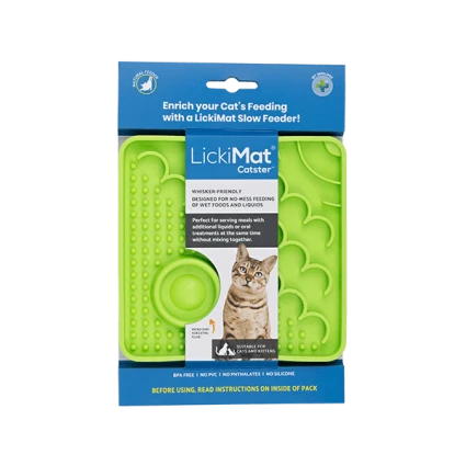 LickiMat Catster is perfect for adult cats, while Kitty is tailored for kittens and smaller cats, alleviating "whisker stress" and promoting relaxed feeding positions.