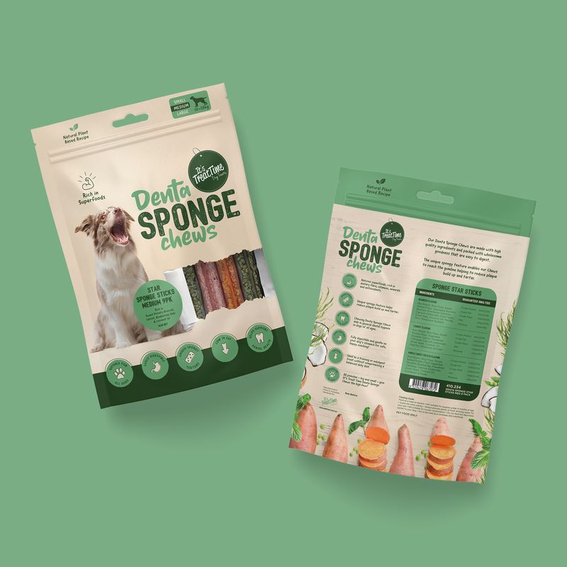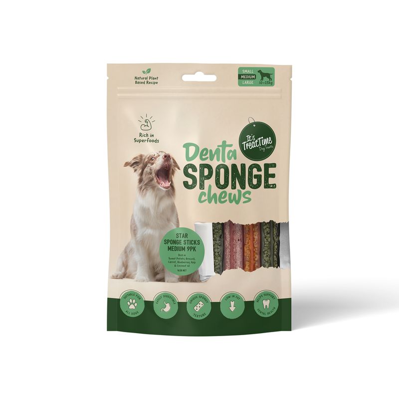 - Suitable for All dogs - All pooches - big and small - give It's Treat Time Denta Sponge Chews the high four!