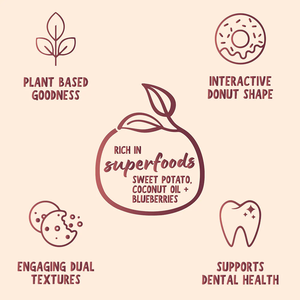 Are a tail-wagging, wholesome snack your pup will love! Baked with real, dog-safe vegetables like carrots, sweet potatoes, and peas, these soft, chewy donuts are the perfect balance of taste and nutrition. Ideal for training rewards, special occasions, or just because your furry friend deserves it, these veggie-packed treats are free from artificial Flavors, colours, and preservatives.