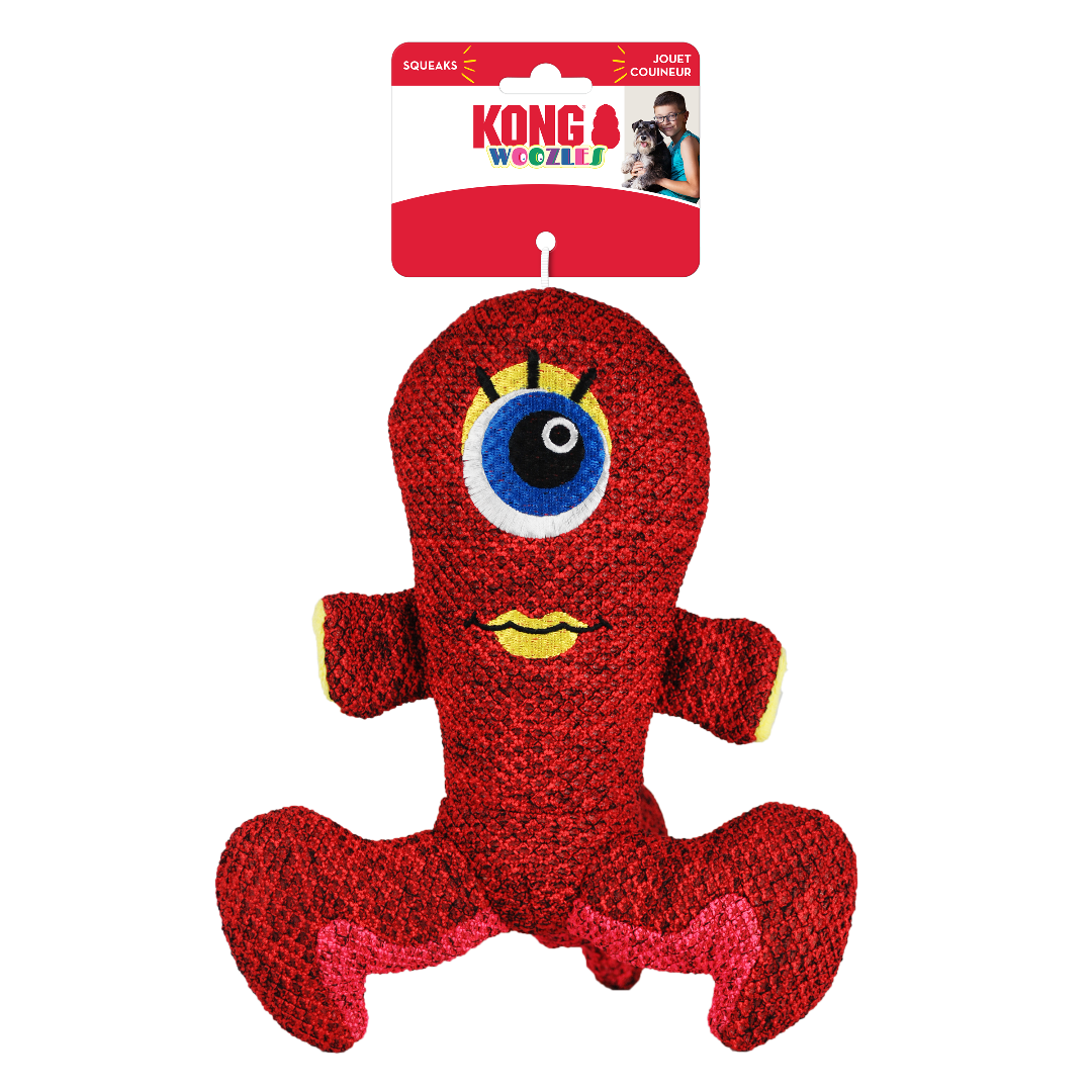 KONG Woozles’ unique texture and shape are ideal for natural shaking instincts. These space age characters are sure to delight dogs and the reinforced material is ideal for long-lasting indoor play sessions. These adorable alien buddies have multiple squeakers to keep dogs engaged for long bouts of healthy exercise.