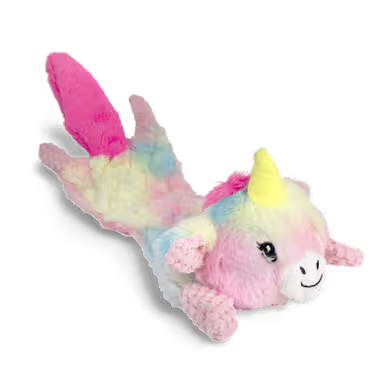 The Snuggle Flatties Rainbow Unicorn combines the joy of squeaky play with the comfort of a plush dog toy—without any mess. It’s lightweight, easy to carry, and irresistibly cute!