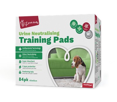 The antibacterial properties of these toilet training pads help reduce bacteria formation while the built-in odour control also results in a cleaner and more hygienic home. They also feature sticky positioning tabs underneath to help keep them in place. While they are a great toilet training aid, the Yours Droolly Urine Neutralising Dog Training Pads are also suitable for pets who are recovering from surgery, older pets with bladder problems or pets needing to be transported in a crate.