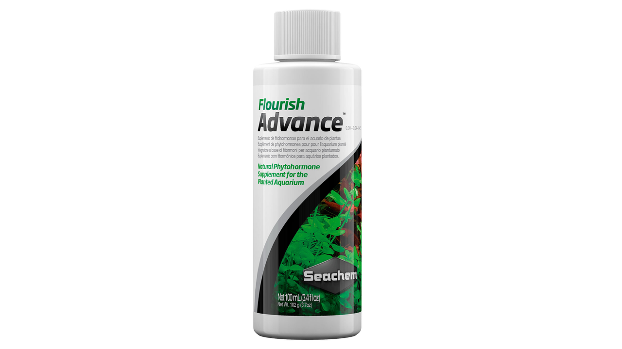 Experience overall aquarium plant health and development with this all-natural biologic growth enhancer. Seachem Flourish Advance Natural Phytohormone Supplement is an advanced liquid plant supplement that contains phytohormones, minerals, and nutrients that dramatically stimulate the growth of both roots and shoots in aquatic plants. Used regularly, it also enhances mineral absorption and improves disease resistance.