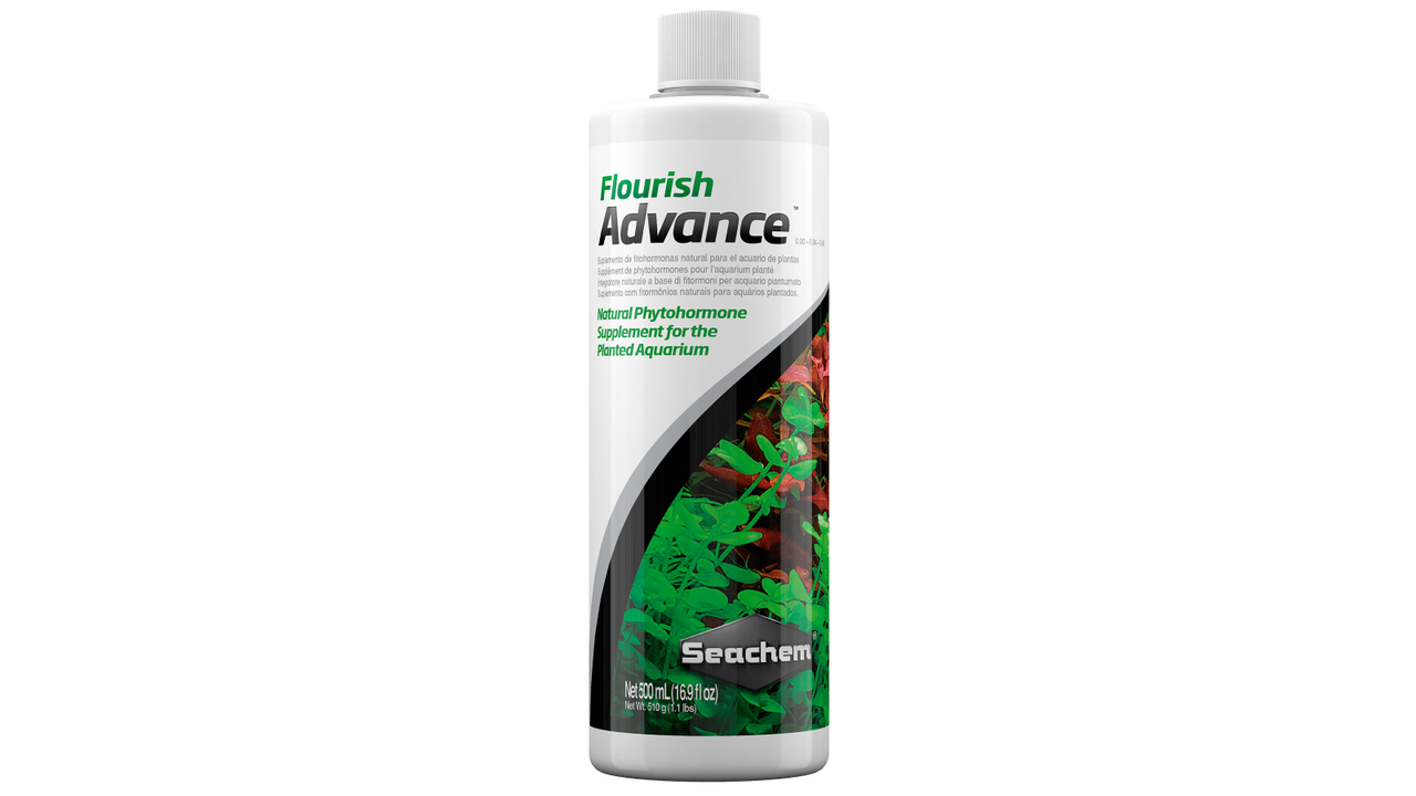 Flourish Advance is an all-natural, biologic growth enhancer for aquatic plants. Its advanced formula contains phytohormones, minerals, and nutrients that dramatically stimulate the growth of both roots and shoots in aquatic plants. Used regularly, it also enhances mineral absorption and improves disease resistance. It is non-toxic and completely safe for all plant varieties as well as for fish and aquatic organisms.