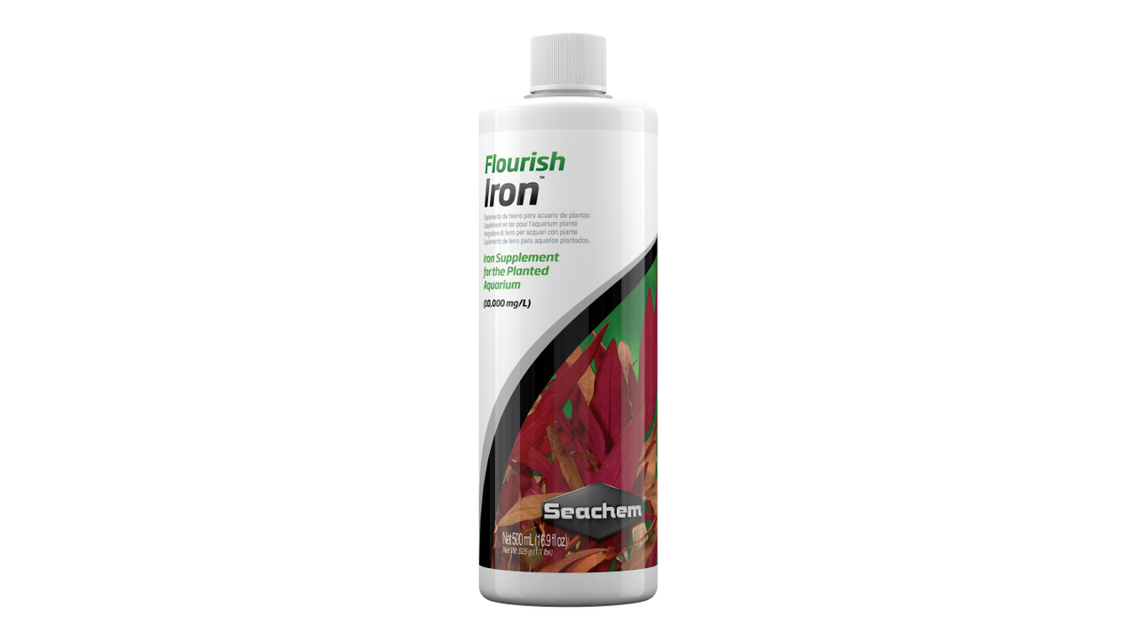 Recommended Dosage: Use 1 capful (5 ml) for each 200 L (50 gallons*) or as required to maintain about 0.10 mg/L iron. For smaller doses, please note that each cap thread is approximately 1 ml. Use Seachem's MultiTest: IronTM test kit (#434288) to monitor iron concentrations. Use as needed to combat signs of iron deficiency (usually seen in new growth), which include: chlorosis (yellowing) of tissue between veins and short and slender stems.