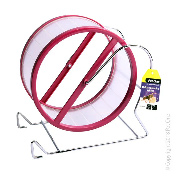 The Pet One Mouse Wheel is the perfect exercise accessory for your pet mouse or rat. The clear plastic wheel allows your pet run to their heart’s content. Always supervise your pet’s playtime, and be sure to have plenty of clean water available.