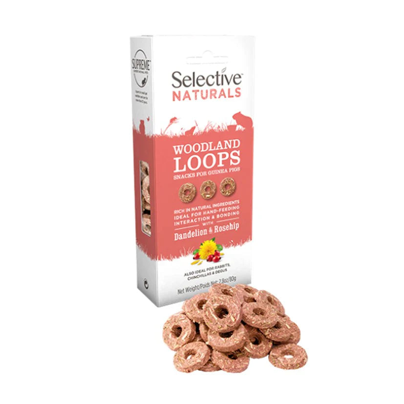 Selective Naturals Woodland Loops delicious and nutritious guinea pig and rabbit treats perfectly complement the Selective food and hay range. With high fibre and no added sugars, they are also ideal for pet chinchillas and degus. It’s the tasty, healthy way to treat your pets.