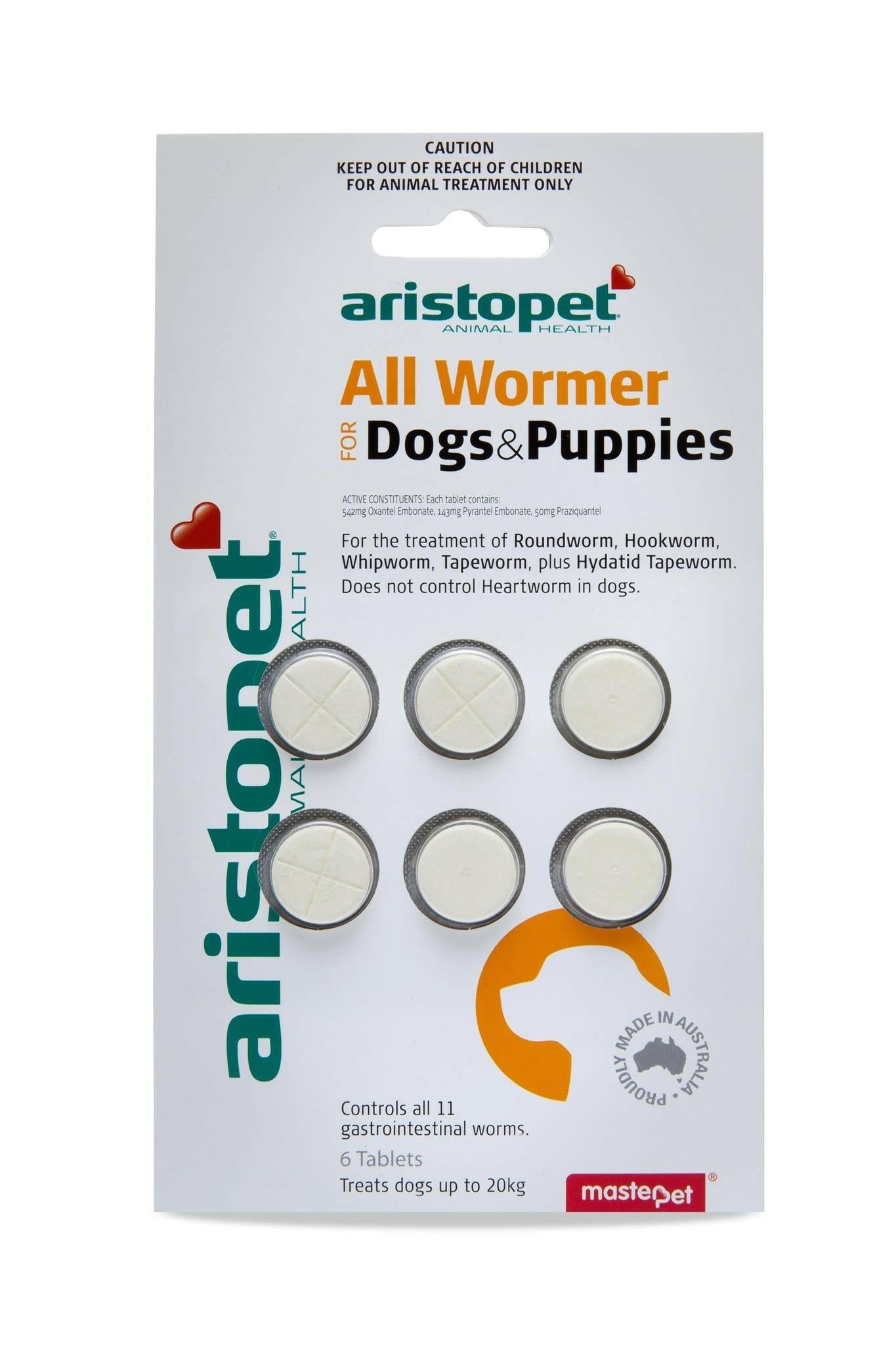1 tab/10kg bodyweight (1.5-2.5kg=1/4 tab, 2.6-5kg=1/2 tab, 5.1-10kg=1 tab).