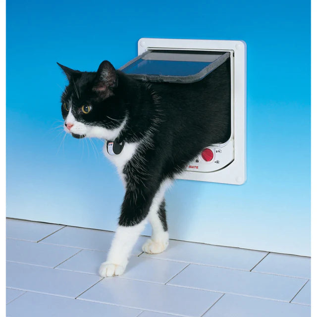 Stray pets can often be a big problem, but this highly proven design provides a reliable solution. Your cat wears a small magnet that doubles as an identification tag. A sensitive, fast-reacting circuit in the cat flap guarantees instant entry for selected cats of all size and temperament. An easy to use 4 way locking system enables complete control over your cats movements.