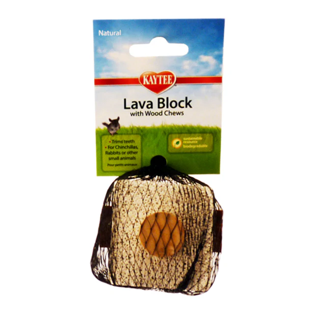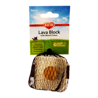 The Kaytee Natural Lava Block with wood chews features a unique combination of volcanic rock material and natural wood pieces.