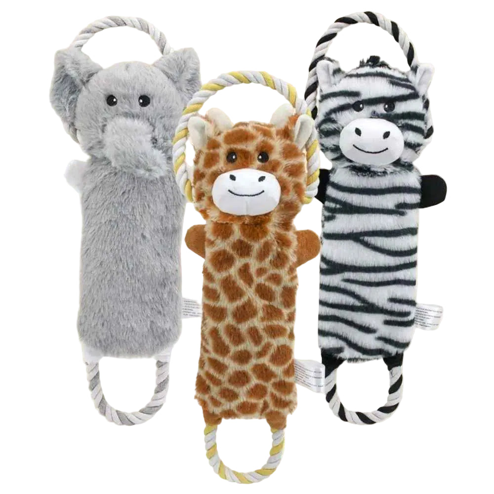 The plush animal section adds softness and familiarity, while the rope ring provides a textured grip for both dogs and owners during play. A built-in squeaker adds extra engagement, helping keep dogs interested.