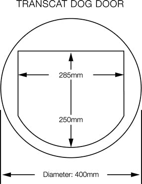 Your Transcat Dog Door can be fitted to thicker panels or solid core wooden doors or walls using a 358mm diameter hole.