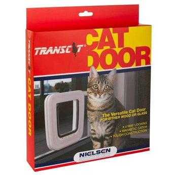 The Transcat Cat Door White is a smaller but more versatile cat door. The versatile Transcat Cat Door White can be installed in glass or wood.The overall flap size of the Transcat Cat Door White is smaller.